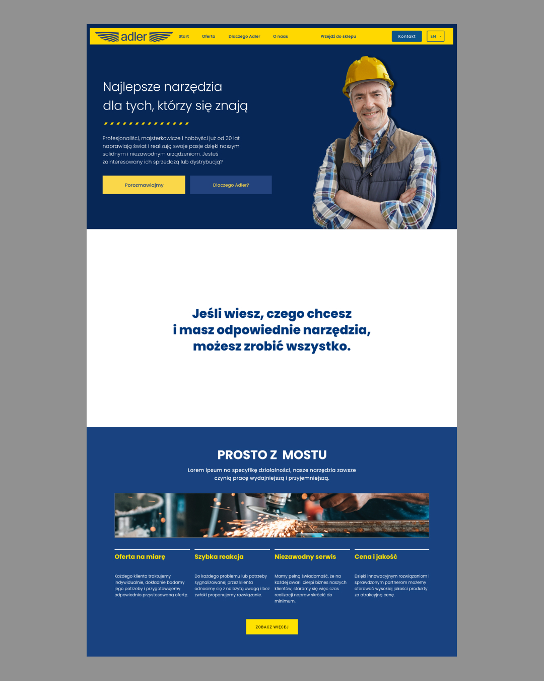 Dzięki unikalnemu designowi SFERY, wysoka jakość narzędzi Adler została w odpowiedni sposób zaprezentowana w internecie i materiałach promocyjnych. Dzięki temu nasza oferta stała się bardziej przejrzysta i atrakcyjna dla partnerów i klientów.